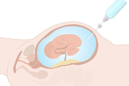 - سپس جراح با هدایت سونوگرافی، یک سوزن بلند را از طریق جدار شکم به درون رحم، جایی به دور از جفت و جنین، در محل تجمع مایع آمنیوتیک فرو برده و چند سی سی مایع آمنیوتیک را با استفاده از سرنگی که به سوزن متصل است، به درون سرنگ می کشد و سپس نمونه را به آزمایشگاه ژنتیک ارسال می کند.